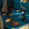 Cette boule de Noël renferme un assortiment de petites douceurs chocolatées, préparés selon un savoir-faire artisanal. Les textures et saveurs variées offrent une expérience festive et gourmande à chaque bouchée.